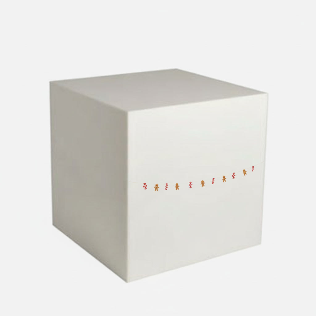 Add a sweet and festive accent to your holiday decor with the gingerbread men and candy cane felt garland. Featuring charming gingerbread figures and peppermint-striped candy shapes in classic seasonal colours, this garland brings a playful yet cosy atmosphere to any space. Made from polyester, it measures 0,3x13x7,5 cm and is ideal for draping across walls, doorways, or mantelpieces. The soft felt texture and cheerful motif make it a perfect decoration for Christmas parties and seasonal gatherings, capturing the warmth and joy of the holiday season.